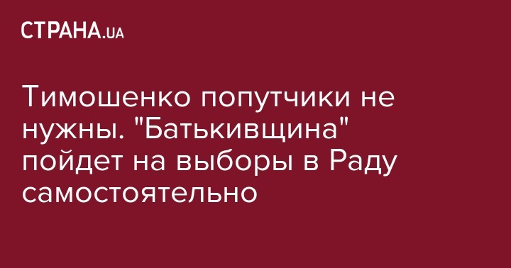Партия "Батькивщина" будет участвовать в предстоящих досрочных выборах в Верховную Раду самостоятельно. Об этом сообщает пресс-служба политсилы.