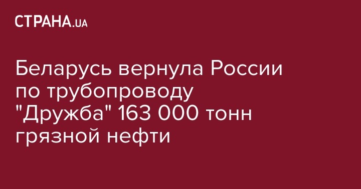 Беларусь откачала по нефтепроводу "Дружба" в направлении РФ 163 000 тонн накопленной загрязненной хлоридами нефти. Об этом пишет РИА "Новости".