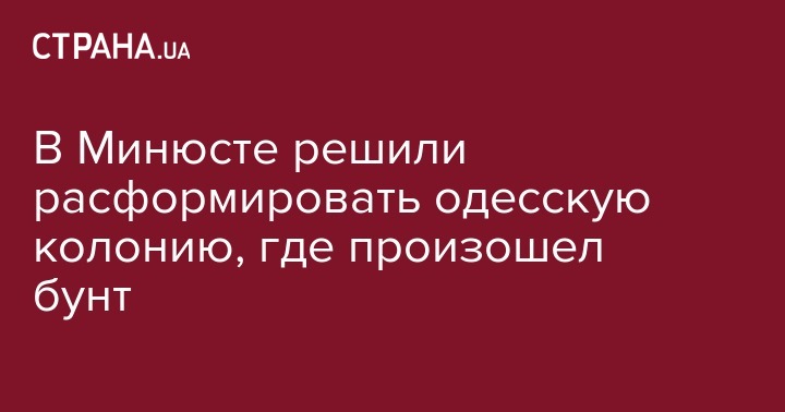 Во вторник, 28 мая, на совещании в Министерстве юстиции Украины было решено расформировать одесскую колонию № 51, в которой 27 мая вспыхнул бунт заключенных. Об этом "Стране" сообщили источники в Минюсте.