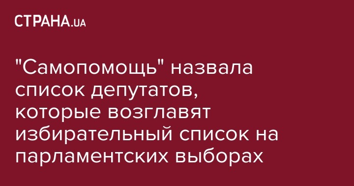 Глава фракции "Объединение "Самопомощь" в Верховной Раде Олег Березюк, зампред паралмента Оксана Сыроид , зампред фракции Самопомощи" в Раде Олег Лаврик, депутаты Рады от "Самопомощи" Роман Семенуха и Татьяна Острикова будут возглавлять избирательный список партии "Самопомощь" во время выборов.