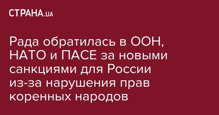 Рада обратилась в ООН, НАТО и ПАСЕ за новыми санкциями для России из-за нарушения прав коренных народов