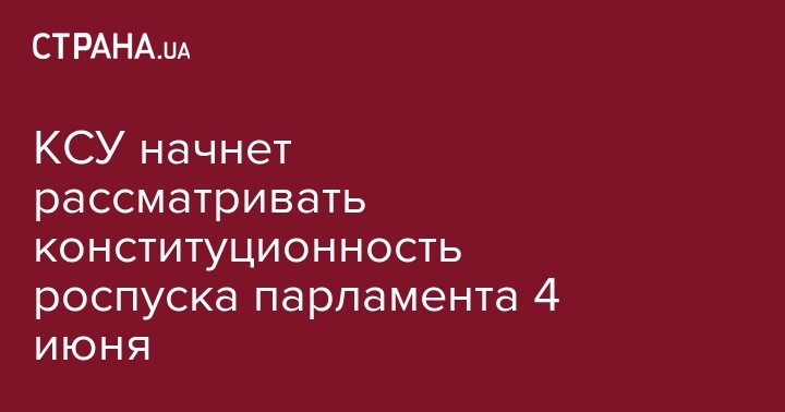 Конституционный Суд Украины (КСУ) включил в повестку дня на 4 июня конституционное представление 62 народных депутатов о соответствии Основному закону указа президента о досрочном прекращении полномочий Верховной Рады Украины и назначении внеочередных выборов. Об этом говорится в опубликованной на сайте КСУ повестке дня заседаний.