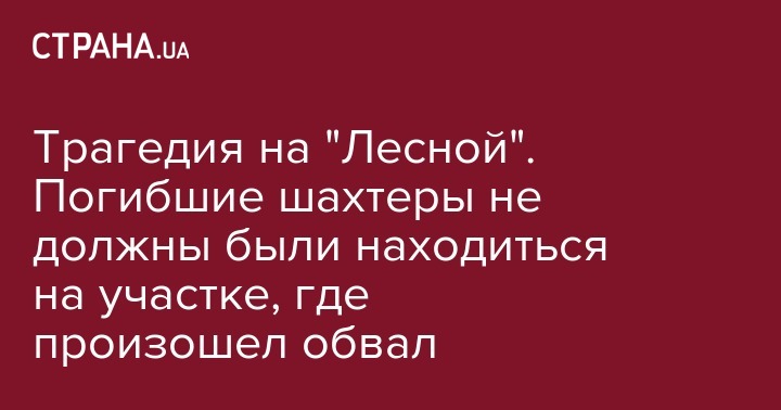 Трагедия на "Лесной". Погибшие шахтеры не должны были находиться на участке, где произошел обвал