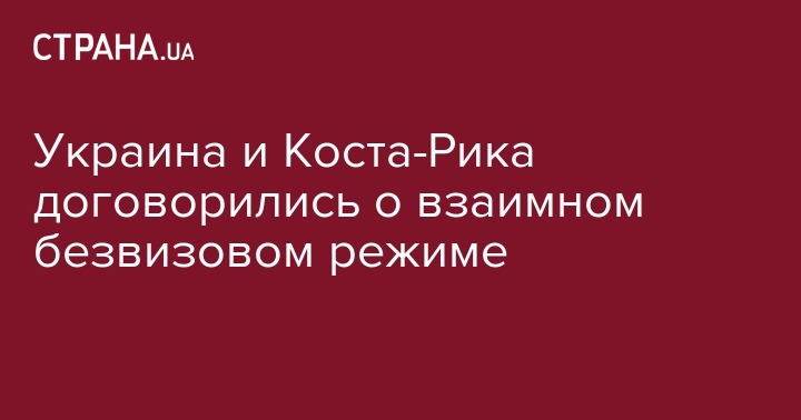 "С целью институализации решения коста-риканской стороны относительно введения безвизового режима для въезда на ее территорию для граждан Украины достигнута договоренность о заключении соответствующего двустороннего соглашения о безвизе", - указано в опубликованном сообщении.