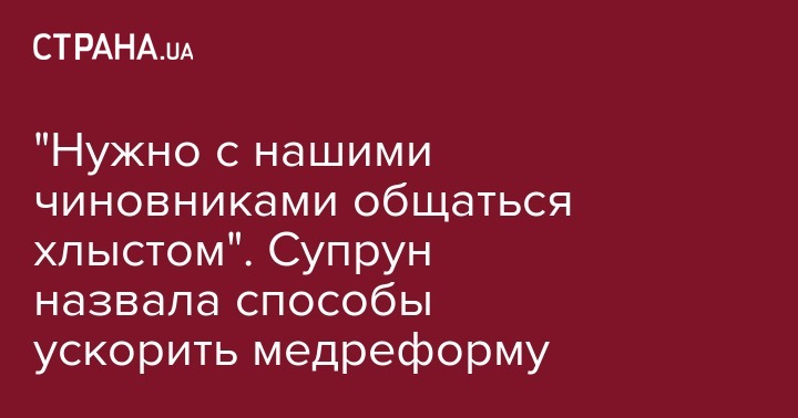 Так по словам Супрун, ускорить медреформу, необходимо ужесточить общение с чиновниками, которые ее замедляют.