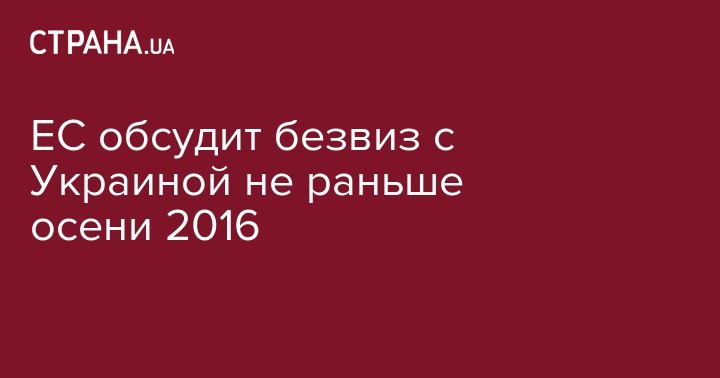 Еврокомиссар Сесилия Мальмстрем сообщила о том, что летом 2016 года Украина точно не получит безвизовый режим с Евросоюзом. Предметное рассмотрение этого вопроса возможно не ранее осени 2016 года в рамках специального саммита, сообщает РИА.