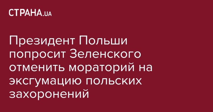 Президент Польши попросит Зеленского отменить мораторий на эксгумацию польских захоронений