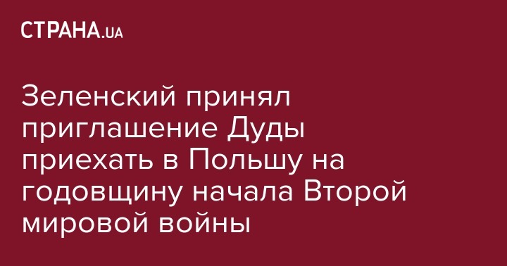 Глава Украины Владимир Зеленский принял приглашение посетить Варшаву на годовщину начала Второй мировой войны. Об этом сообщил президент Польши Анджей Дуда, передает Интерфакс-Украина.
