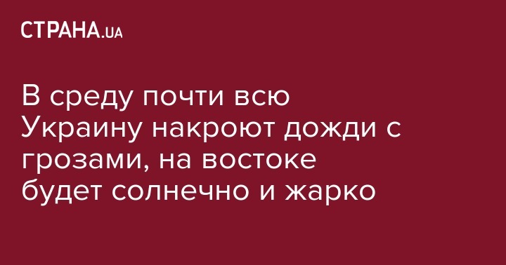 В среду почти всю Украину накроют дожди с грозами, на востоке будет солнечно и жарко