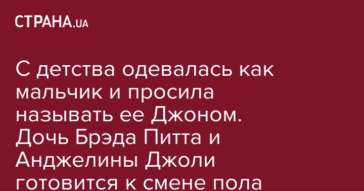 Старшая биологическая дочь звездных экс-супругов Анджелины Джоли и Брэда Питта Шайло, которой недавно исполнилось 13 лет, намерена стать мальчиком. По данным аргентинского издания La Nacion, она начала подготовку к смене пола и уже почти год принимает специальные гормональные препараты, чтобы стать более мужественной.