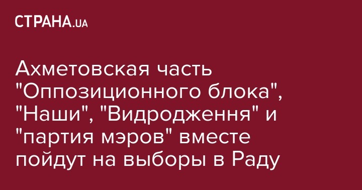 Ранее "Страна" писала, что переговоры об объединении "Оппозиционной платформы За жизнь" и ахметовской части "Оппозиционного блока" не увенчались успехом.