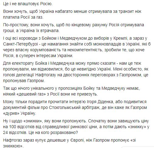 Озвученное российским "Газпромом" предложение  скидки на природный газ химерными и призывает российскую компанию выполнять текущий контракт и решения судов. Об этом заявил исполнительны директор НАК "Нафтогаз Украины" Юрий Витренко  на своей странице в соцсети Facebook.