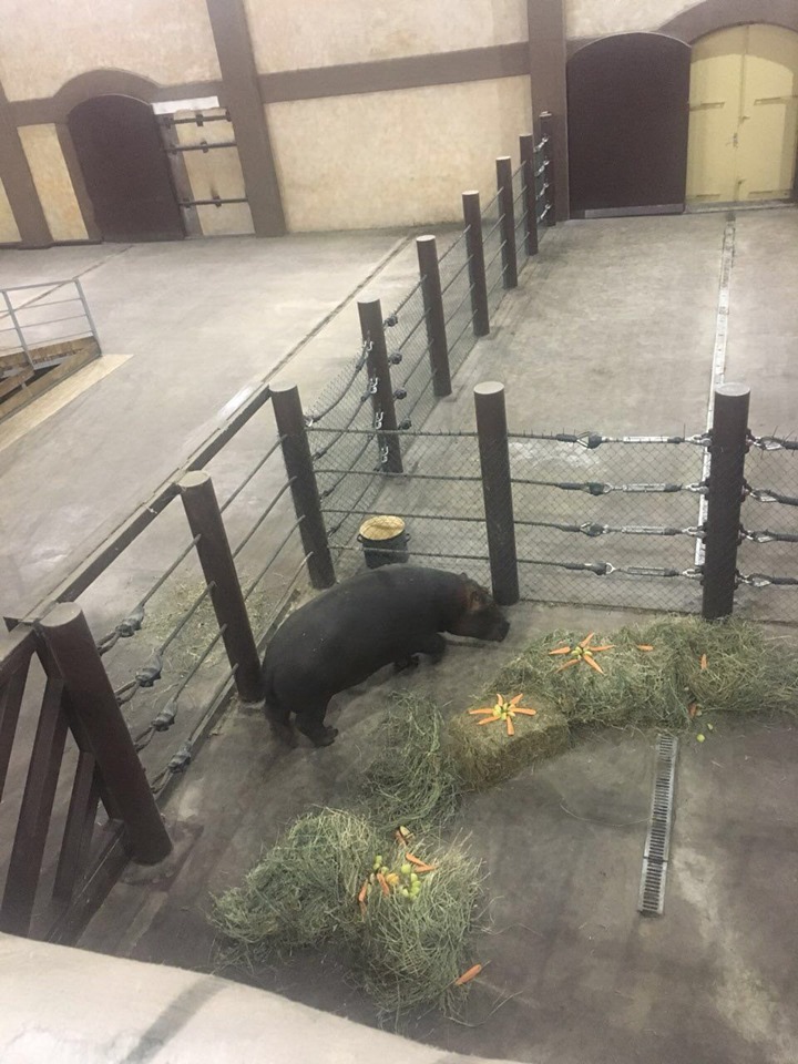 "Бегемотик еще очень юный и оказался крайне непоседливым! Фургон, который стал ему домом на время поездки в Украину аж ходуном ходил те 15 минут, что длилось таможенное оформление. Оказалось, что он сначала хотел пить, а потом начал активную ночную жизнь, что присуще этим животным", - сказано в сообщении.