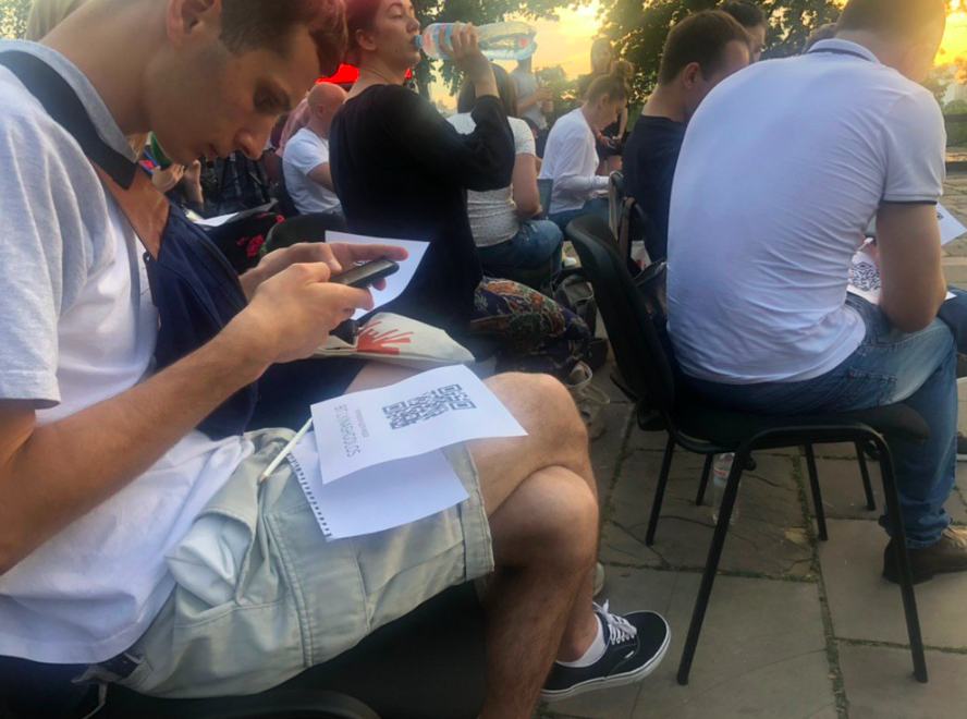 19.45 Журналистам раздали не списки партии, а QR-код, по которому его можно скачать: