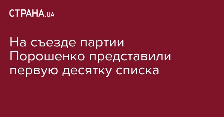 Первую десятку возглавит лидер партии Петр Порошенко. Второй номер - председатель Верховной Рады Андрей Парубий. Третьим номером – первый заместитель председателя Верховной Рады Ирина Геращенко, четвертым - командующий десантно-штурмовых войск ВСУ генерал-лейтенант Михаил Забродский, пятым - певица и волонтер София Федина, шестым - лидер крымскотатарского народа Мустафа Джемилев, седьмой номер - командир медицинского батальона "Госпитальеры" Яна Зинкевич, восьмой - бывший глава Львовской ОГА Олег Синютка, девятый номер - заместитель председателя Меджлиса Ахтем Чийгоз, десятый - вице-премьер Иванна Климпуш-Цинцадзе.