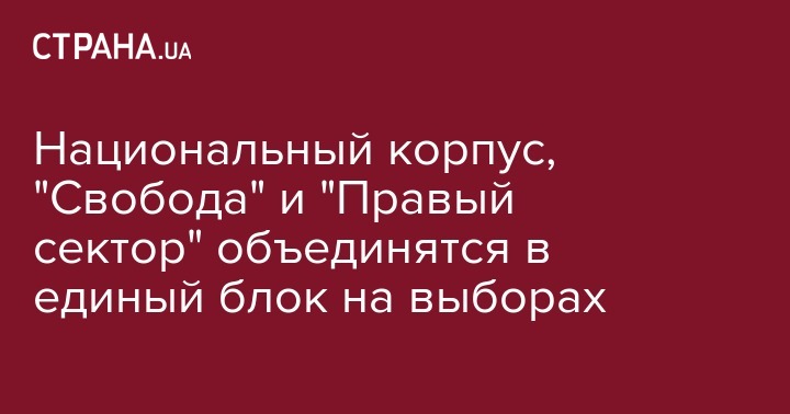 9 июня Национальный корпус, партия ВО "Свобода" и "Правый сектор", объединяются в Единый Националистический блок для участия в предстоящих парламентских выборах, которые запланированы на 21 июля.
