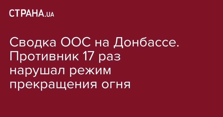 За минувшие сутки, 10 июня, противник 17 раз нарушил режим прекращения огня, потерь среди украинских военнослужащих нет. Об этом сообщает пресс-центр штаба операции Объединенных сил.