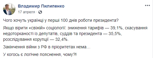 В апреле Пилипенко удивлялся, что украинцам нет дела до войны с Россией: "Чего хотят украинцы в первые 100 дней работы президента?