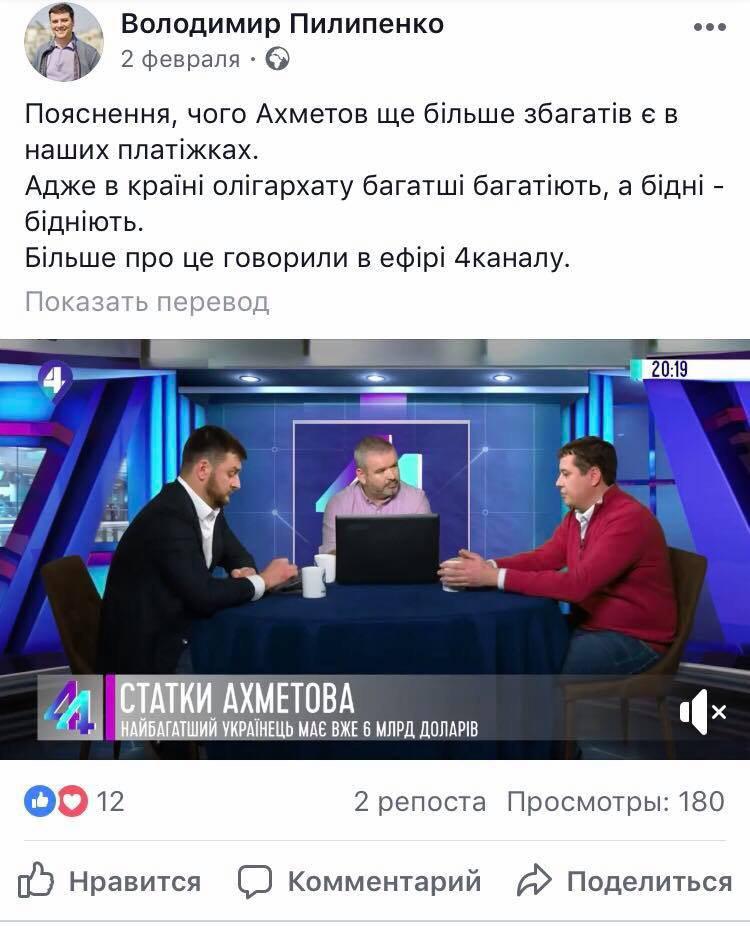 Вот так он однажды анонсировал свое появление в телеэфире, высказавшись нелицеприятно в адрес Рината Ахметова (в то время, когда он еще не стал партнером Коломойского).