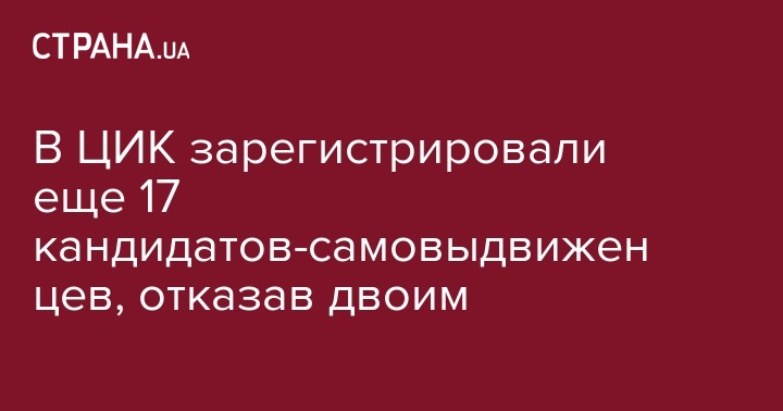 Кроме того, Комиссия отказала в регистрации двоих кандидатов в народные депутаты Украины.