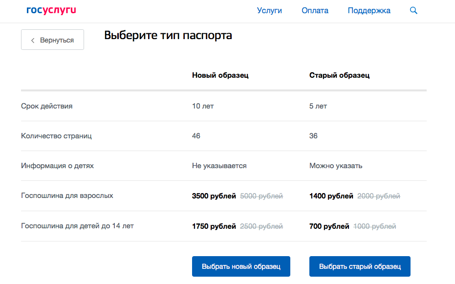 Еще одна востребованная опция - оформление загранпаспорта онлайн. На скриншоте ниже можно обратить внимание, что при оформлении документа онлайн предоставляется скидка на пошлину.