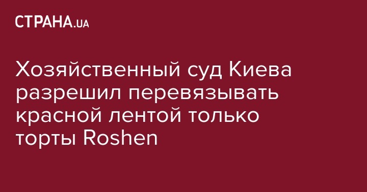 Хозяйственный суд Киева удовлетворил иск кондитерской корпорации "Рошен" против Министерства экономического развития и торговли и ГП "Укрпатент" по регистрации знака в виде "красного цвета материалов для упаковки кондитерских изделий". Об этом говорится в решении  суда от 3 июня, сообщают "Наші гроші".