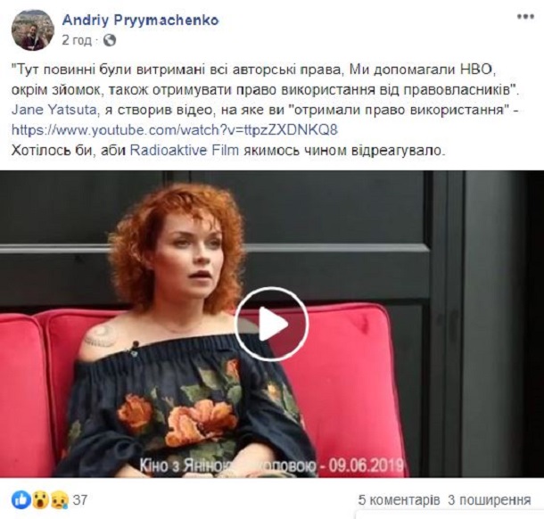В Со Radioactive Films ответили Примаченко в Facebook: "Права на использование видео были получены и подтверждены дирекцией музея Чернобыля в Киеве". А Евгения Яцута предложила Андрею Примаченко связаться с организацией, если он предоставит письменное подтверждение своего авторства.