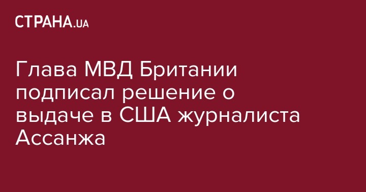 Глава МВД Британии подписал решение о выдаче в США журналиста Ассанжа