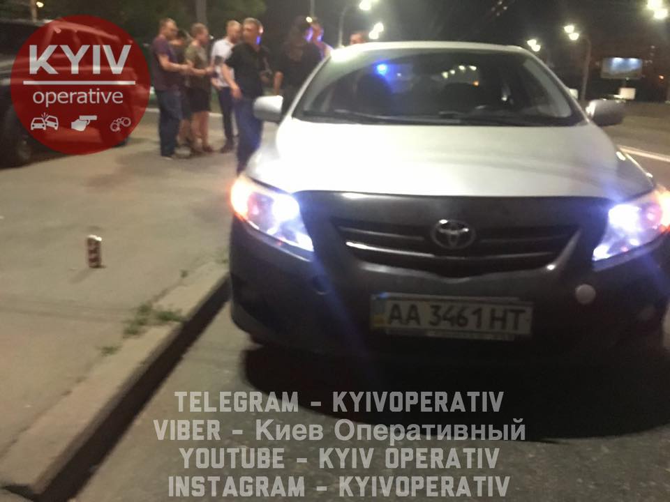 В Киеве на проспекте Шухевича патрульные полицейские остановили автомобиль Toyota с подозрительными людьми в салоне.