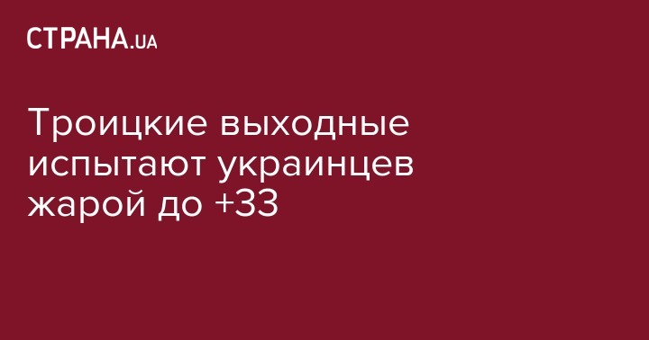 Выходные в Украине на Троицу, по прогнозам синоптиков, будут преимущественно знойными с некоторыми осадками в западных регионах.
