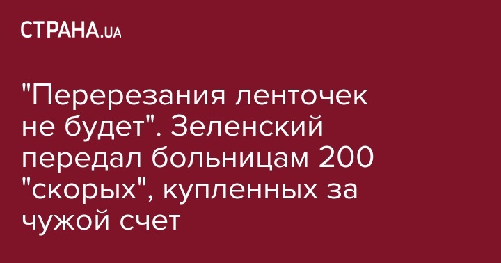 "Перерезания ленточек не будет". Зеленский передал больницам 200 "скорых", купленных за чужой счет