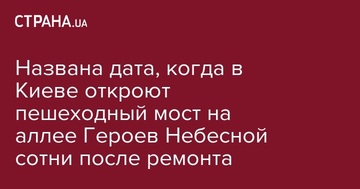 В Киеве на аллее Героев Небесной сотни с 18 июня до 22 августа в связи с проведением ремонтных работ планируют закрыть движение на пешеходном мосту. Об этом сообщает пресс-служба киевской горгосадминистрации.