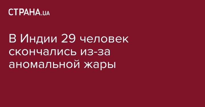 В штате Бихар на северо-востоке Индии 29 человек погибли из-за аномальной жары, которая сохраняется в регионе на протяжении уже более месяца. Кроме того, как пишет газета Times of India, еще более 30 человек были госпитализированы.