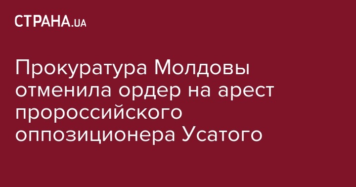 Прокуратура Молдовы отменила ордер на арест, выданный на лидера оппозиционной в стране "Нашей партии" Ренато Усатого. Об этом сообщает "Интерфакс".