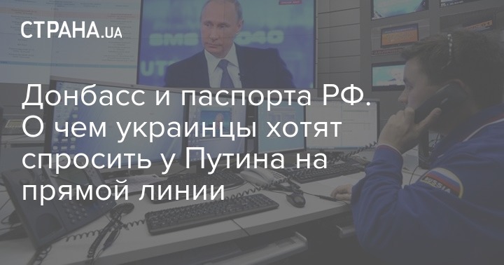 В пресс-службе Кремля нам рассказали, что вопросы от украинцев можно разделить на два типа - "о судьбе Донбасса" и по поводу выдачи российского гражданства. Во втором случае речь идет не только о жителях Донбасса, а об украинцах - уроженцах из других регионов.
