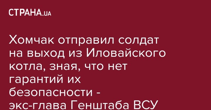 Генерал Хомчак, по словам экс-руководителя Генштаба, знал о том, что нет договоренности о гарантиях со стороны противника, еще с 23:00 предыдущих суток, однако все равно выход был не в боевых порядках. По мнению Муженко, основным фактором Иловайской трагедии стало то, что на момент проведения АТО существовало несколько центров принятия решений. "Недавно генерал Хомчак заявил, что некоторые вопросы остаются тайными ... Но нет сейчас тайн в проблемах рассмотрения проблемы Иловайская, это я вам говорю, как государственный эксперт по вопросам государственной тайны", - ответил Муженко на вопрос журналиста.