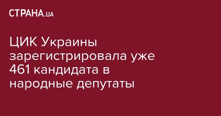 К понедельнику, 17 июня, ЦИК зарегистрировала 461 кандидата в народные депутаты Украины на внеочередные выборы в парламент, которые пройдут 21 июня, передает пресс-служба Центризбиркома.