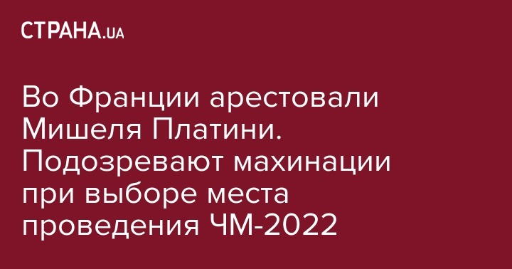 Сенсационная новость пришла из Франции. В городе Нантер, сегодня, 18 июня, был арестован экс-президент УЕФА Мишель Платини, который ранее подал апелляцию в ЕСПЧ на отстранение от футбола. Он был взят под стражу в ходе расследования дела о коррупции во время выборов места проведения чемпионата мира по футболу 2022 года. Мишеля Платини доставили в антикоррупционный отдел полиции.
