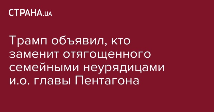 "И.о. главы Пентагона Патрик Шанахан проделал прекрасную работу. Но он решил не продолжать процесс утверждения (в должности постоянного главы оборонного ведомства - Прим. Ред.), так как хочет уделить больше времени семье", - написал он. Трамп пояснил, что назначит новым и.о. главы Пентагона Марка Эспера, который до сих пор занимал пост министра сухопутных сил США.