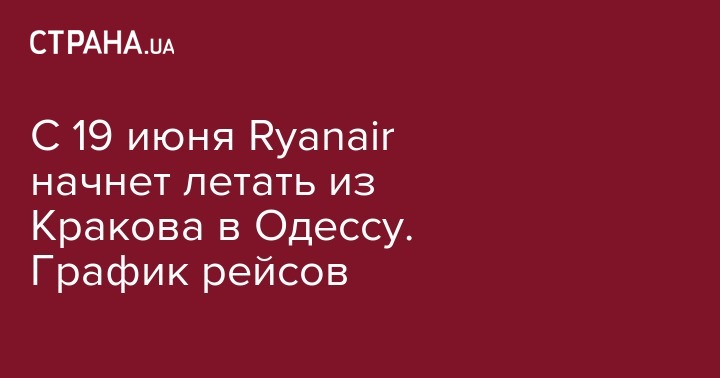 С 19 июня Ryanair начнет летать из Кракова в Одессу. График рейсов