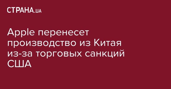 Apple перенесет производство из Китая из-за торговых санкций США