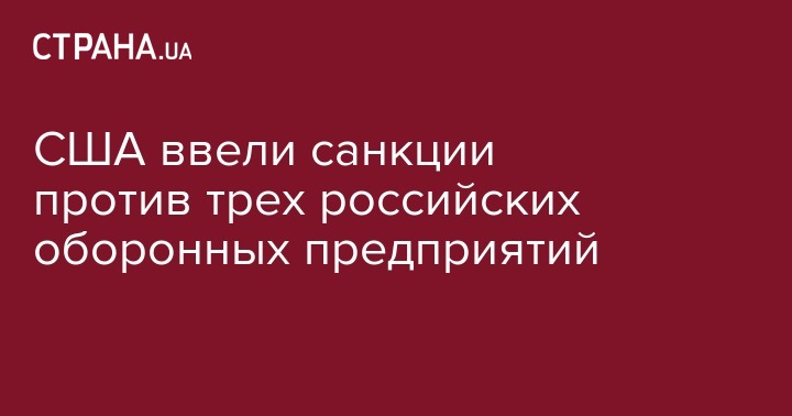 США ввели санкции против трех российских оборонных предприятий