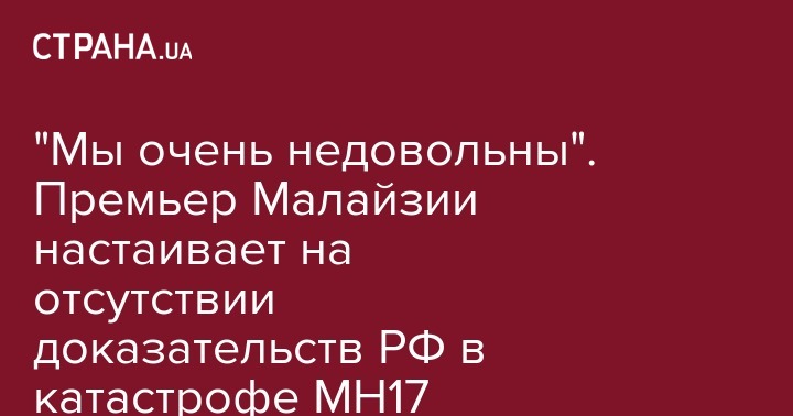 В конце мая премьер Малайзии также заявлял в интервью местному изданию MalayMail, что хочет видеть больше весомых доказательств против РФ по делу о сбивании пассажирского рейса МН17. "Она (ракета - прим. ред.) могла быть сделана и в Украине. Нужны убедительные доказательства, чтобы говорить о том, что ее выпустили русские, а не сепаратисты и не украинское правительство - у него ведь тоже есть такие ракеты", - заявил он.