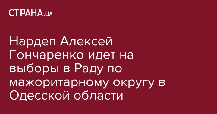 Замглавы фракции "Блок Петра Порошенко", народный депутат Алексей Гончаренко заявил о намерении баллотироваться на выборы в парламент по мажоритарному округу №137 на севере Одесской области (Подольск, Балта, Кодыма, Саврань).