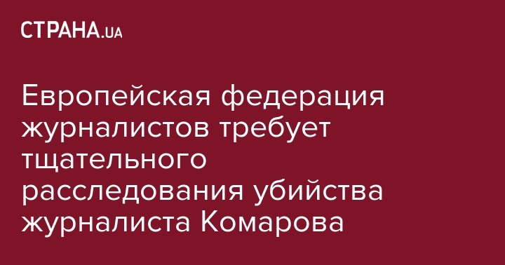 Международная и Европейская федерация журналистов вместе с их филиалом, Национальным союзом журналистов Украины, заявили, что осуждают убийство украинского журналиста Вадима Комарова и убеждают власти провести тщательное расследование этого дела, и привлечь виновных к ответственности. Об этом сообщается на сайте ЕФЖ.