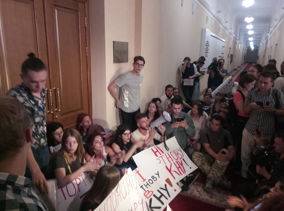 Протестующие собрались под главным корпусом университета, однако позже они зашли внутрь и устроили акцию прямо под кабинетом Губерского. Они требовали, чтобы Портнова немедленно уволили, а ректор извинился.