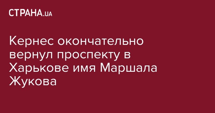 Мэр Харькова Геннадий Кернес подписал решение депутатов Харьковского горсовета о переименовании проспекта Григоренко обратно - в Маршала Жукова. Об этом он сообщил изданию МедиаПорт в пятницу, 21 июня.