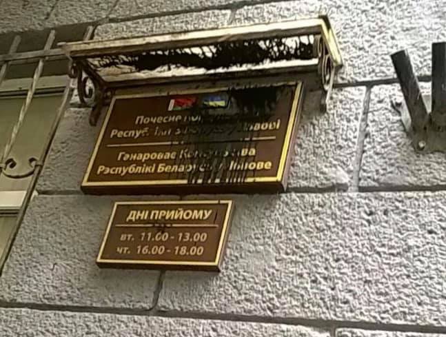 Согласно сообщению, неизвестные ночью облили краской стены, окно, дверь и табличку с названием белорусского дипломатического учреждения.