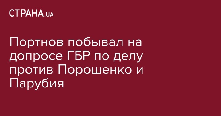 Государственное бюро расседований (ГБР) в очередной раз допросило юриста, бывшего первого замглавы АП Андрея Портнова по его заявлению о преступлении в отношении бывшего президента Петра Порошенко и председателя Верховной Рады Андрея Парубия об узурпации ими власти и фальсификации документов о формировании коалиции и правительства. Об этом юрист сообщил на своей странице в социальной сети Facebook.