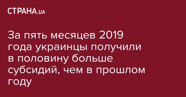 За пять месяцев 2019 года украинцы получили в половину больше субсидий, чем в прошлом году